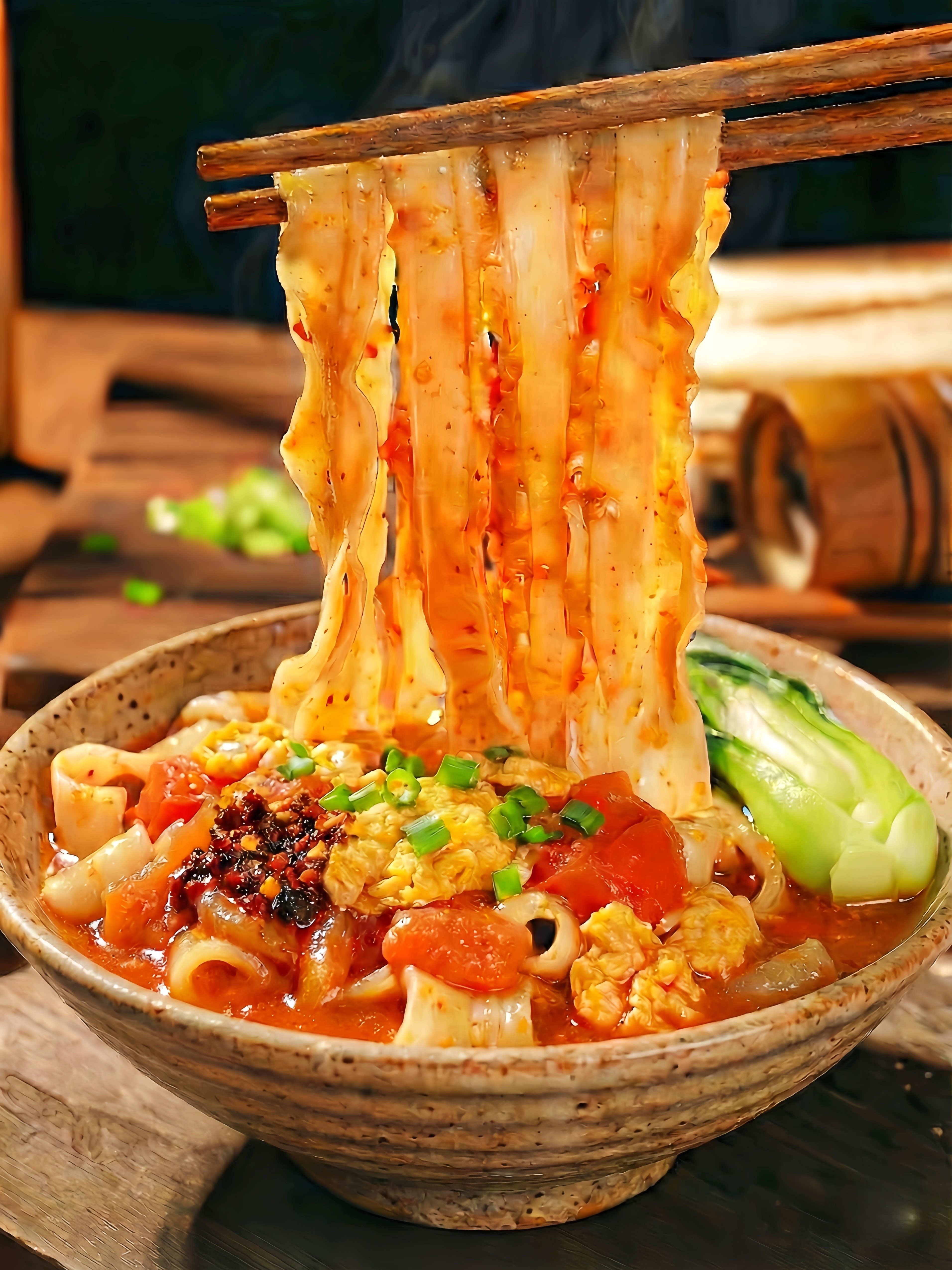 Originating in Shanxi Province during the Ming Dynasty (14th century), knife-shaved noodles have been perfected over centuries by generations of northern Chinese families. Made from high-gluten wheat dough and often paired with thinly sliced beef or chicken, this dish embodies hearty, down-to-earth northern flavors.