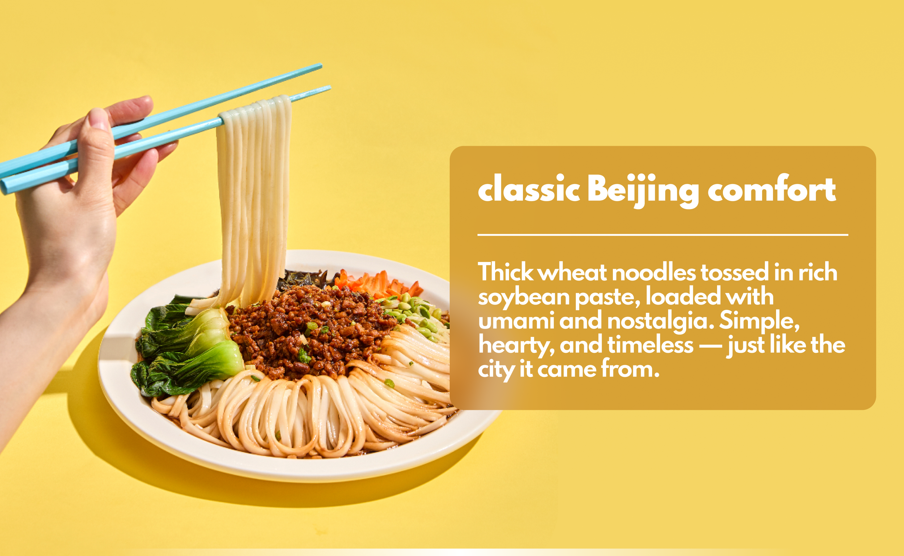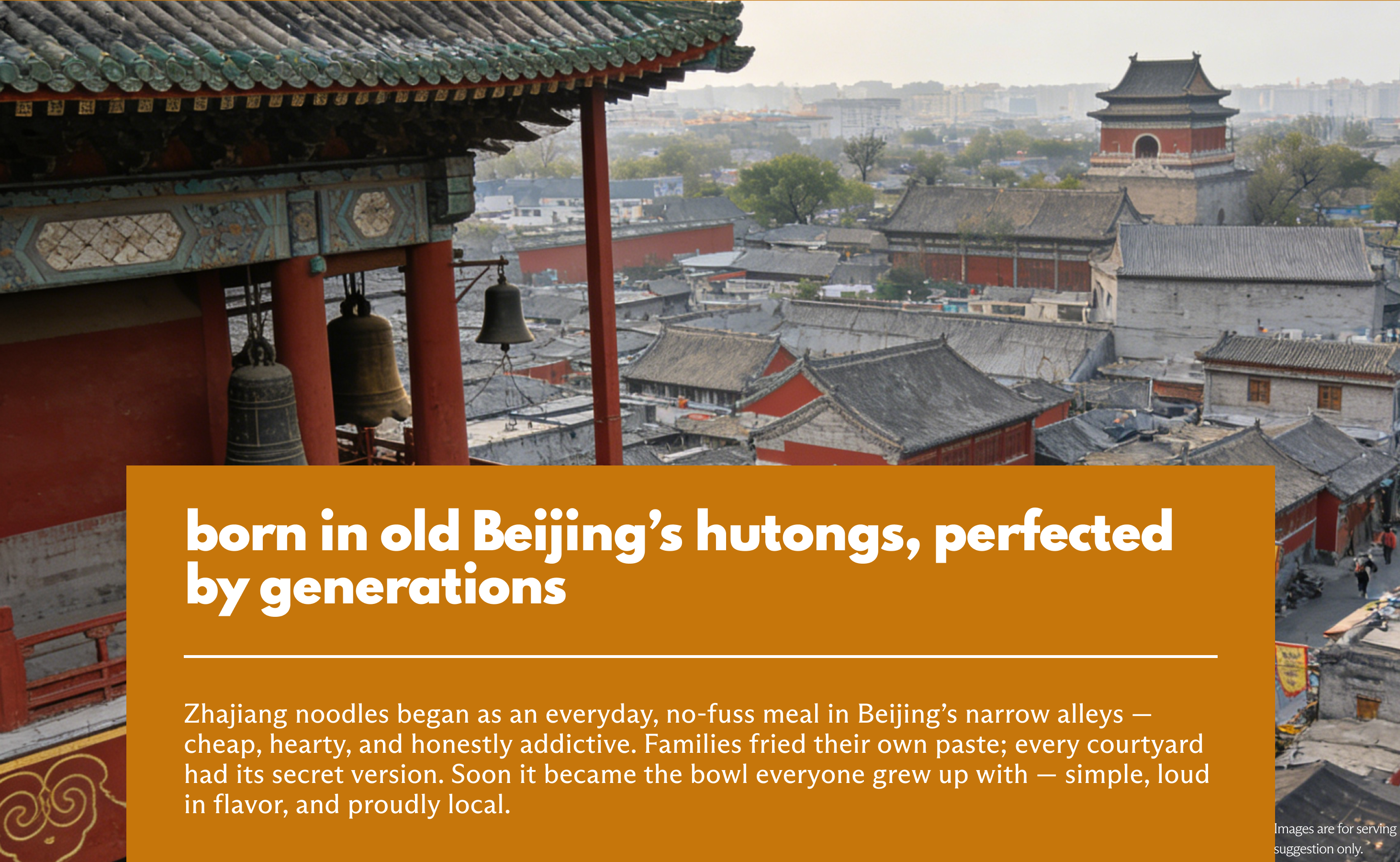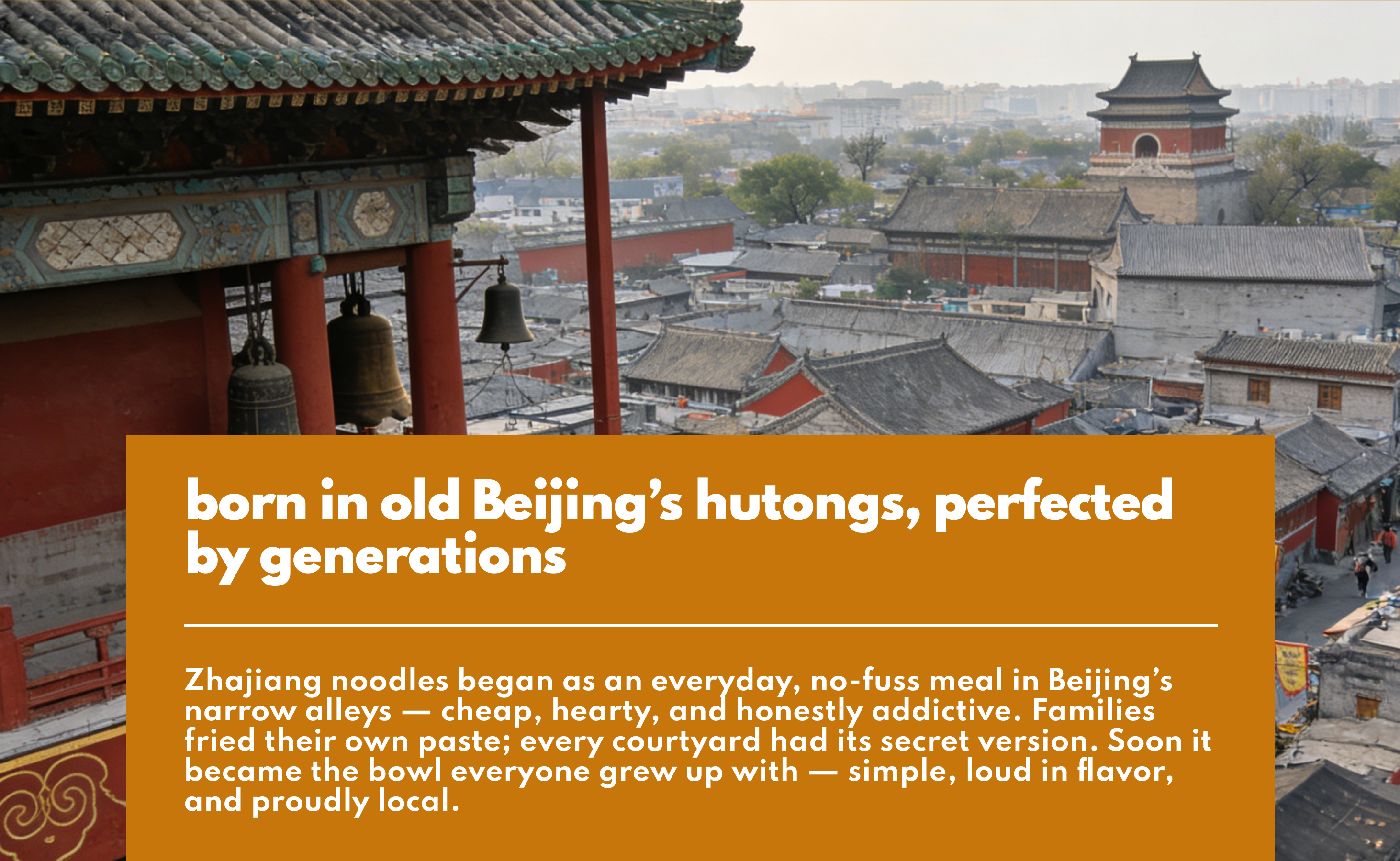 Description: From Beijing's old hutongs, generations perfected this rich street classic. Savory. Bold. Timeless.